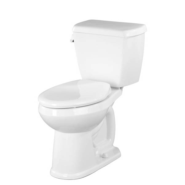- Two-piece toilet accommodates a 12” rough-in