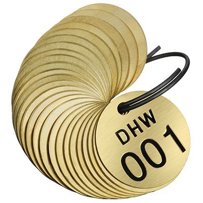 Brass DHW Valve Tag, 25/Pack Numbered 001-0025